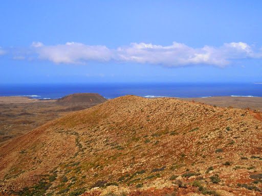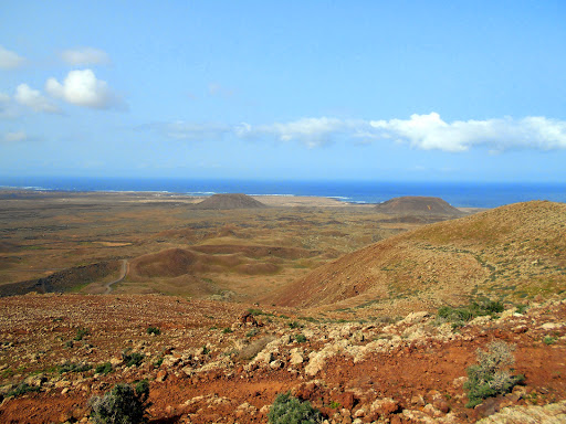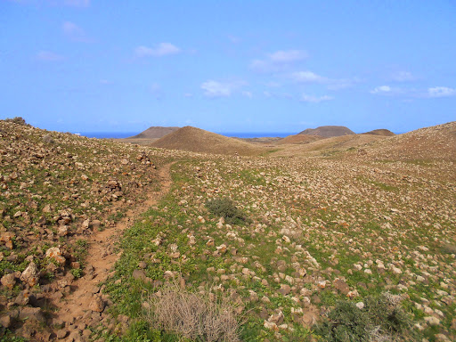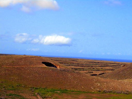 Idę sobie, za mną na horyzoncie majaczą się góry, w tym wyróżniający się stożek Tindaya ( święta góra, wejście tylko z pozwoleniem od lokalnych władz – napisałam maila do Ayuntamiento La Oliva – bez odpowiedzi ). Przede mną łagodne kopuły dawno wygasłych wulkanów. Idę i zastanawiam się,ile milionów lat musiało minąć,żeby ziejące ogniem góry zamieniły się w zielone pagórki. W rzeczywistości aktywnośc wulkaniczna w tym rejonie miała miejsce ok 50 000 tys lat temu ( całkiem niedawno, prawda?) i powiększyła wyspę o ok 120 km2.