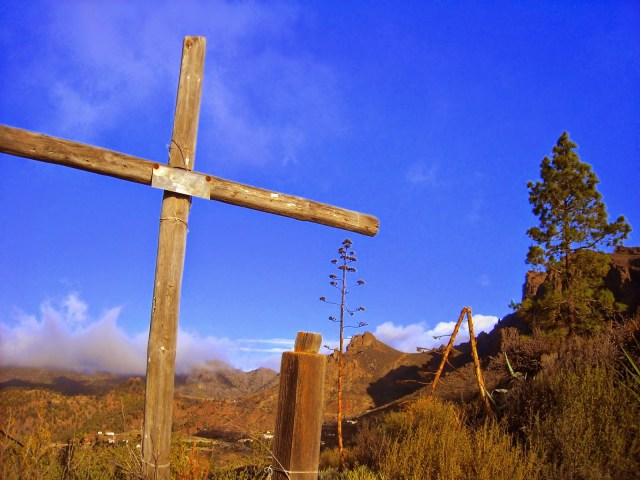 Wreszcie po jakiejś godzinie autobus zatrzymujemy się na przełęczy ( Passo de la Herradura, przystanek chyba nazywa się Cruz Grande) …wysiadam i miało nie przewraca mnie wiatr. Od razu ubieram na siebie wszystkie ciuchy, ale wciąż jest zimno…tymczasem na dole w Maspalomas pierwsi ludzie wychodzą smażyć się na plaży. Szok termiczny! A jesteśmy tylko na wysokości 1249 n.p.m..