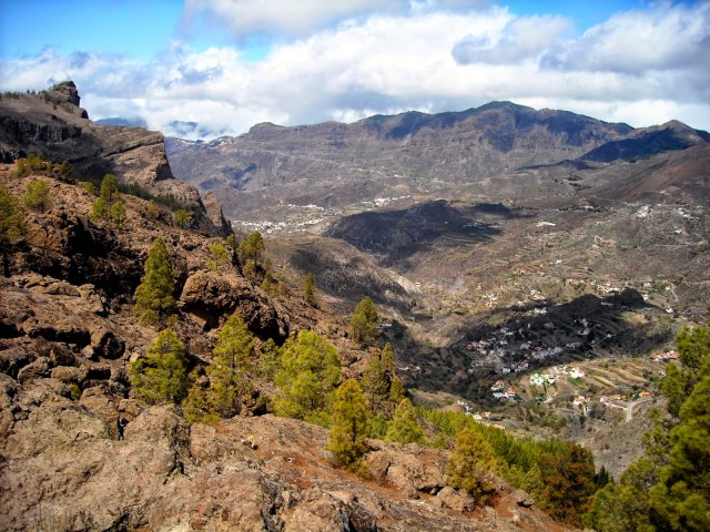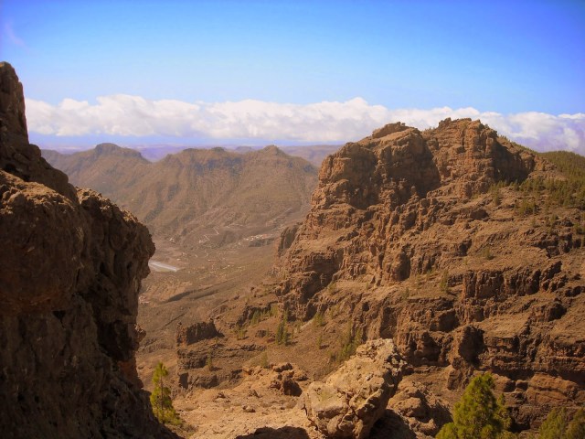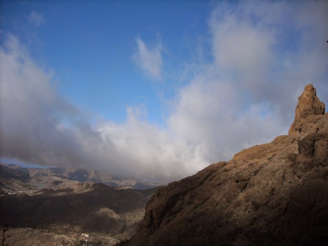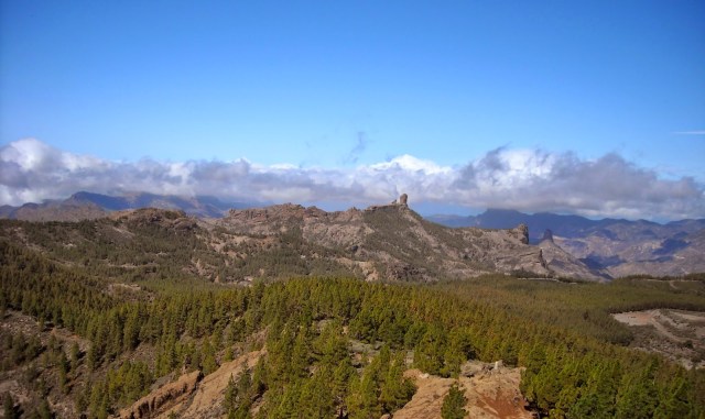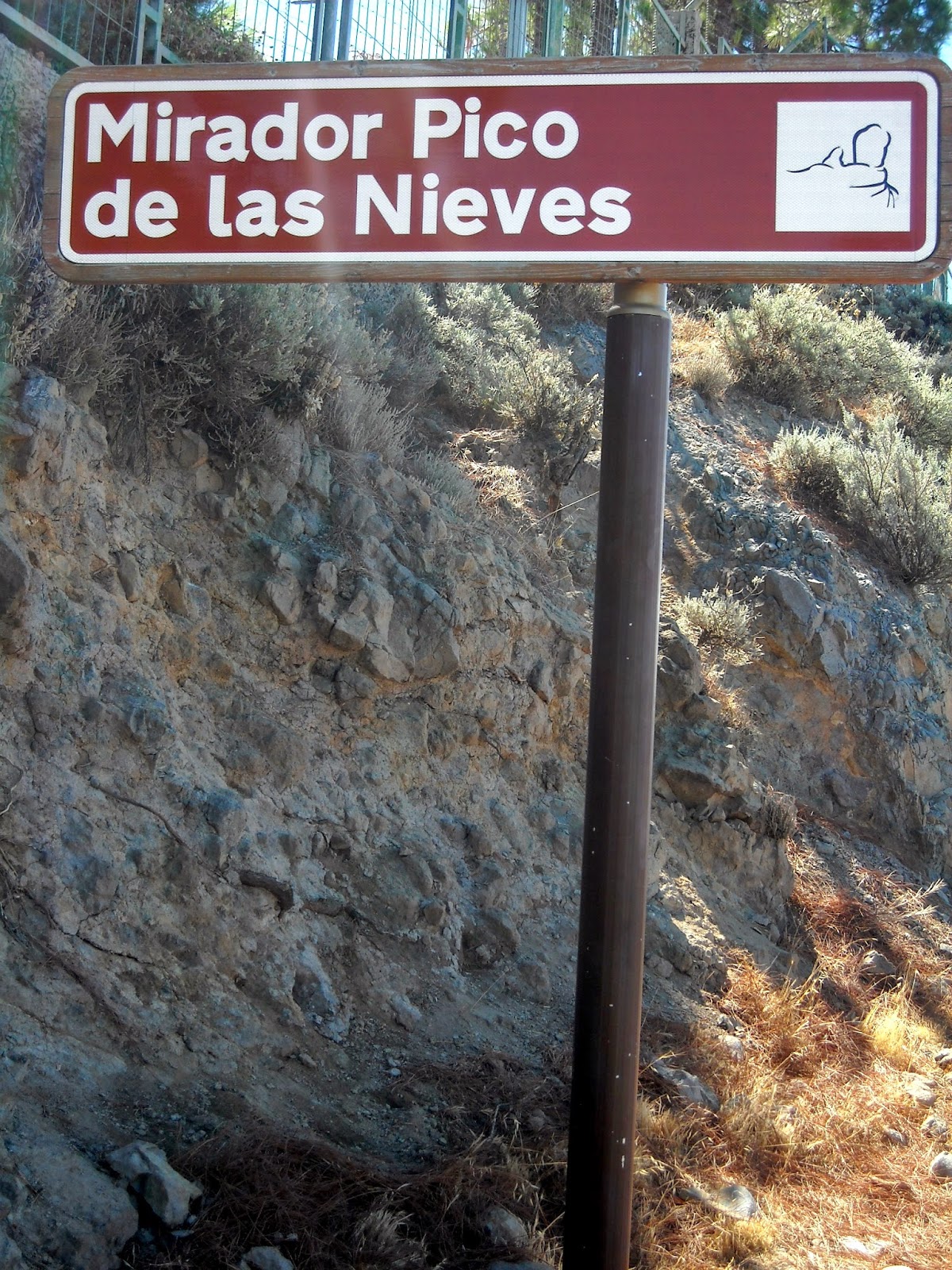 Z braku oznaczeń, trafiłam przypadkiem na Pico de Las Nieves! Nie taki był plan, ale okazuje się że na szczycie znajduję marzenie każdego strudzonego wędrowca – budka z zimną colą!Pan zna parę słów po polsku i częstuje mnie winem. ( Pewnie liczy,że kupię, ale kto by to wino targał na dół). widoki z Pico są całkiem fajne, znajduję dobry punkt widokowy na skale i tam jem śniadanie.Tłumu nie ma, zaledwie parę osób, które przyjechały tu samochodami.