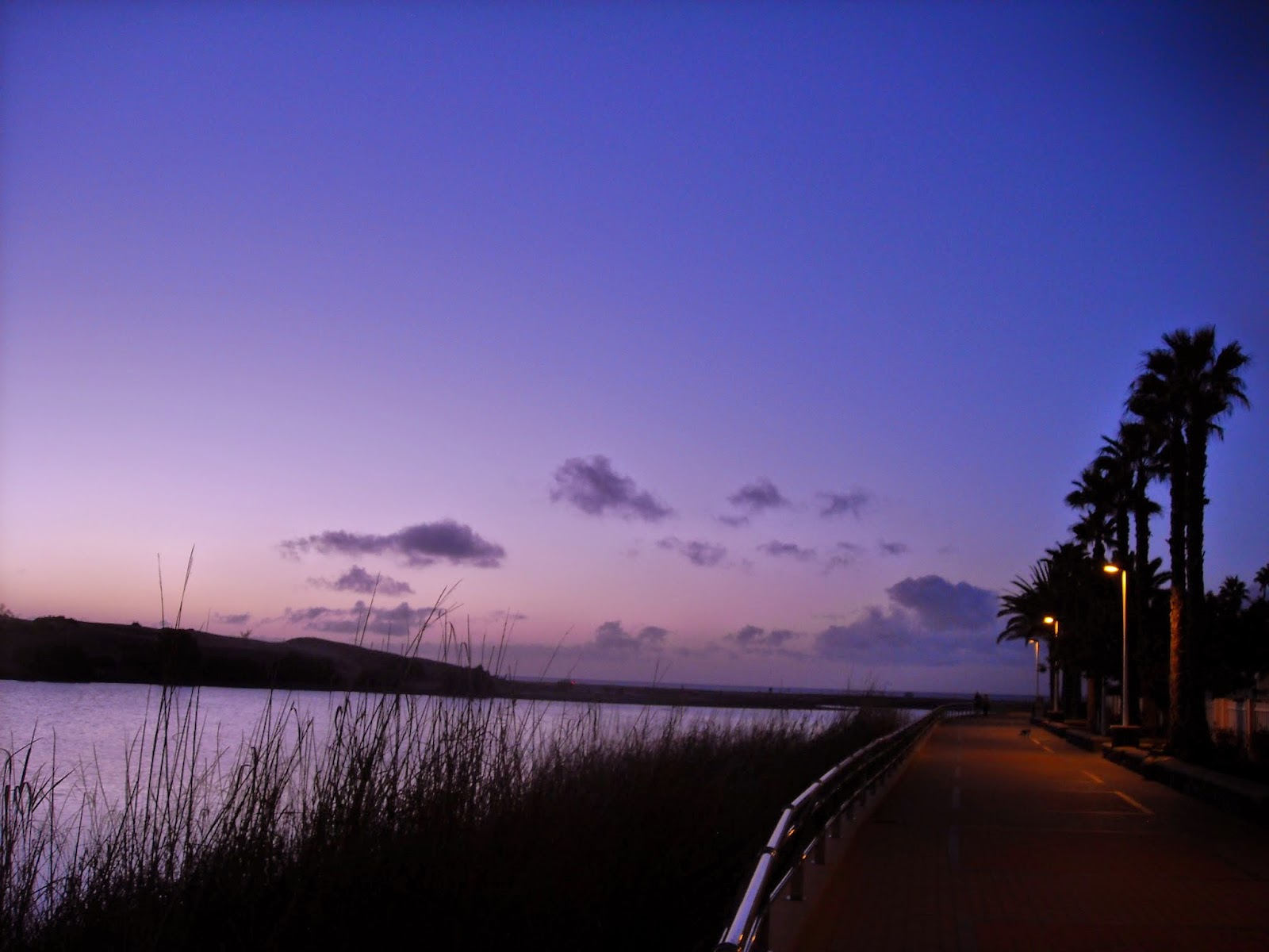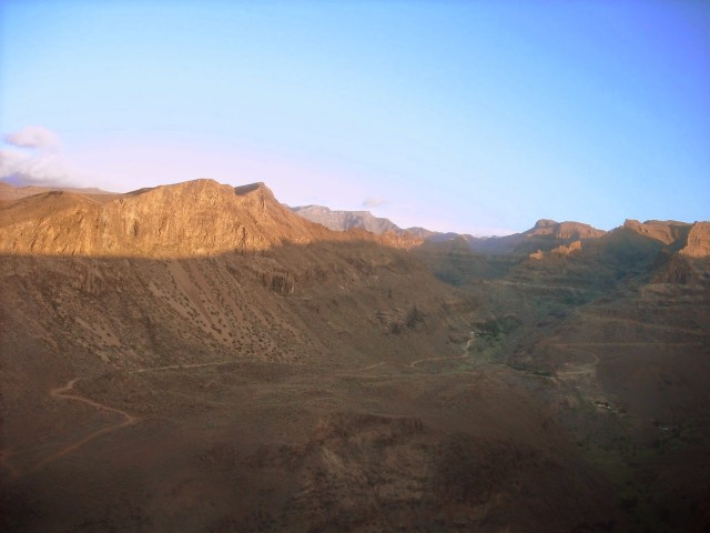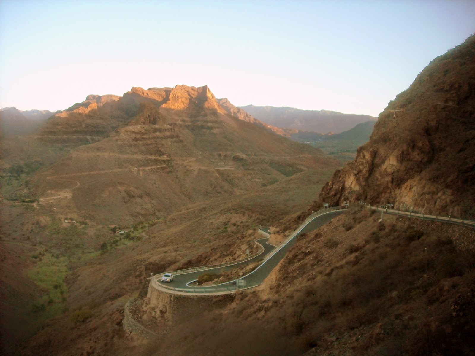 Właściwie w Maspalomas zatrzymałam się na dwie noce tylko dlatego,że stamtąd odjeżdża jedyny autobus w kierunku górzystego i dzikiego środka wyspy.Nie tylko jedyny, ale i jeden dziennie. Wstałam ciemną nocą i wzdłuż czegoś,co kiedyś było chyba kanałem z wodą pomaszerowałam w kierunku dworca ( dobre pół godziny spaceru). Niesamowicie wyglądało Maspalomas przed świtem, zupełnie inne miasto niż głośne,tłoczne i skąpane w ostrym słońcu miejsce,jakie widziałam poprzedniego dnia.