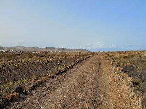 Po kilkunastu minutach pojawia się drogowskaz pokazujący,że do Corralejo jest 13 km i zaczyna się właściwy szlak. Sendero de Bayuyo. Droga lekka, łatwa i przyjemna, żadnych trudności – prawie cały czas po płaskim utwardzaną drogą/kamiennym chodnikiem. Nuda? Być może. Ale ja się nie nudziłam – szłam sobie po prostu na lajcie, nie śpiesząc się, szczęśliwa,ze wreszcie pokazało się słońce. Myślę,że w pochmurny dzień trasa byłaby o wiele mniej ciekawa,żeby nie powiedzieć dobijająca.