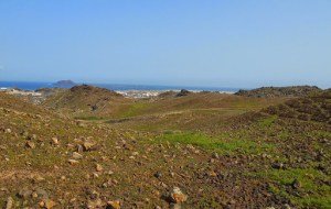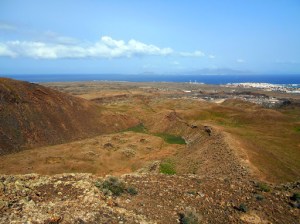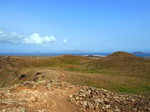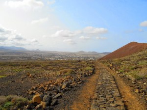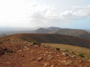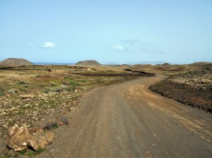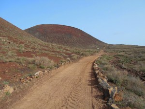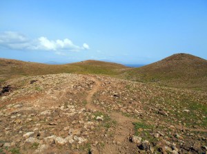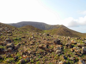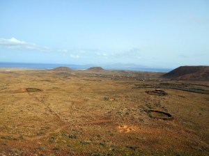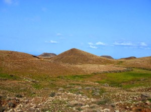 Idę sobie, za mną na horyzoncie majaczą się góry, w tym wyróżniający się stożek Tindaya ( święta góra, wejście tylko z pozwoleniem od lokalnych władz – napisałam maila do Ayuntamiento La Oliva – bez odpowiedzi ). Przede mną łagodne kopuły dawno wygasłych wulkanów. Idę i zastanawiam się,ile milionów lat musiało minąć,żeby ziejące ogniem góry zamieniły się w zielone pagórki. W rzeczywistości aktywnośc wulkaniczna w tym rejonie miała miejsce ok 50 000 tys lat temu ( całkiem niedawno, prawda?) i powiększyła wyspę o ok 120 km2.