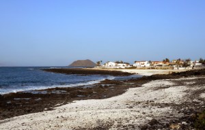 Szlak z Lajares do Corralejo to łatwa i przyjemna klikugodzinna trasa,ponoć szczególnie piękna po południu. Ja jednak wyszłam rano,w nadziei że popołudnie spędzę na słynnych wydmach. Do Lajares można dojechać autobusem z El Cotillo ( albo jak kto woli z Corralejo)W Lajares należy skręcić na asfaltówkę prowadzącą do Majanicho, ja oczywiście coś pomieszałam i z pół godziny błąkałam się wśród rozrzuconych u stóp wulkanu domków.