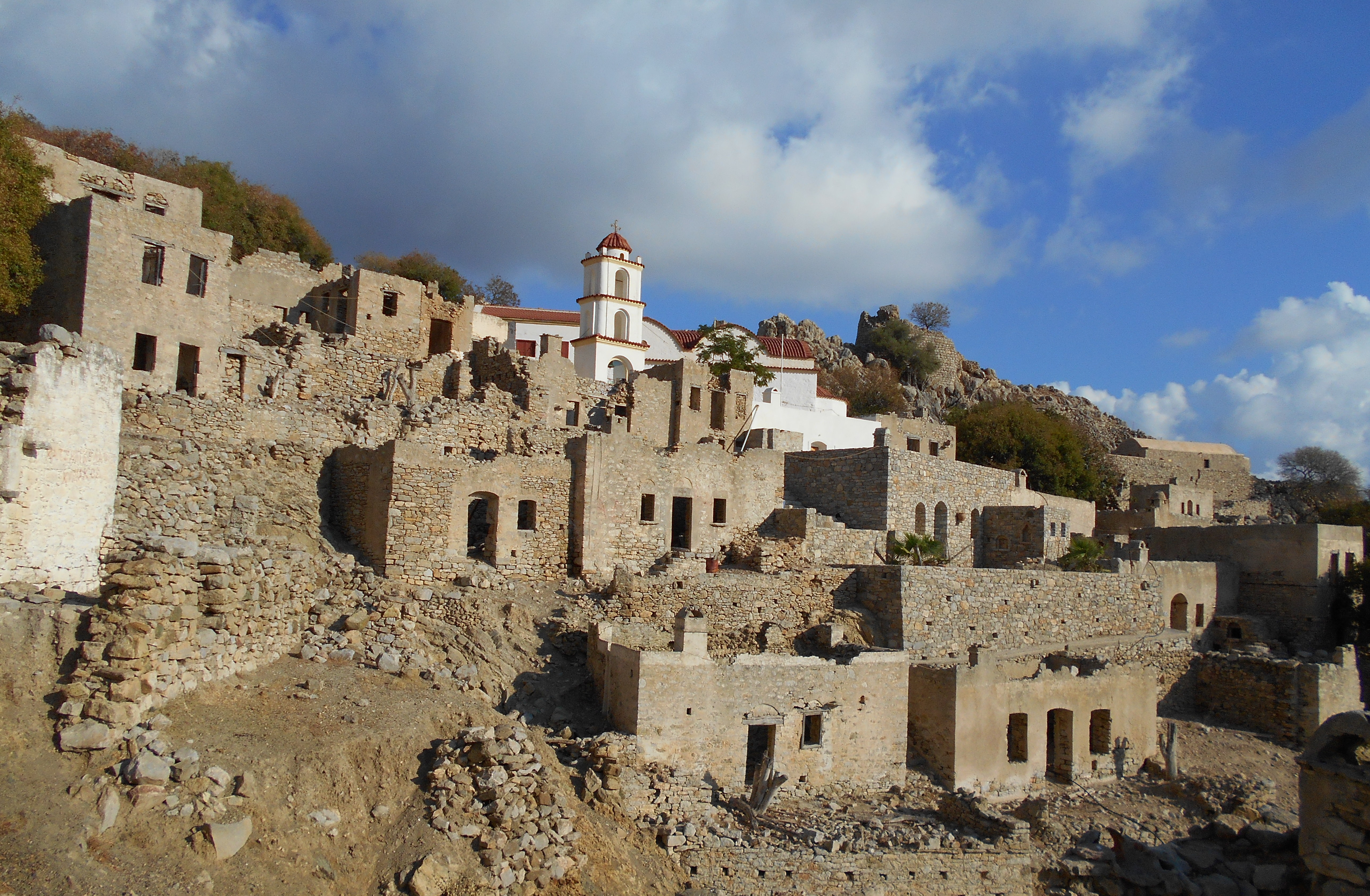 Dziś Mikro Chorio to miasteczko duchów – domy coraz bardziej niszczeją, w mury wdziera się roślinność, pomiędzy ruinami rosną drzewa…Co ciekawe, wśród zniszczonych budynków wyróżnia się prawie nienaruszona sylwetka białego kościoła, nieco wyżej – ruiny średniowiecznej wieży. Kiedy chodzi się uliczkami (a raczej tym, co z nich zostało) wioski, można zauważyć,że budynki pochodzą z różnych okresów – najstarsza część znajduje się od północno- wschodniej strony, najnowsza zwraca ku dolinie i morzu.
